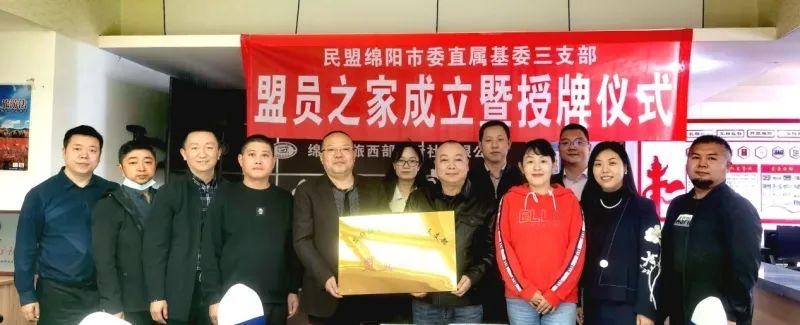 10月30日下午,民盟绵阳市委直属基委三支部“盟员之家”成立暨授牌仪式在绵阳中旅西部旅行社举行。盟市委专职副主委谢普、副秘书长胡跃军、王兵出席授牌仪式,三支部支委成员、部分盟务骨干参加仪式。
