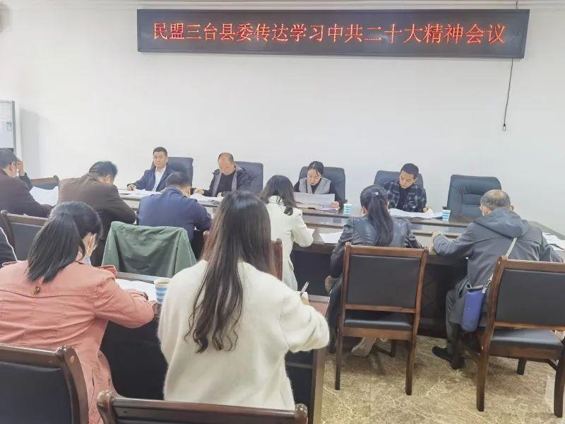 会议传达学习了中共二十大会议精神,民盟中央主席丁仲礼学习中共二十大精神的署名文章,中共四川省委常委、绵阳市委书记曹立军在全市传达学习党的二十大精神会议上的讲话精神,中共三台县委书记吴明禹在全县传达学习党的二十大精神会议上的讲话精神,并按照《民盟绵阳市委关于学习贯彻中国共产党第二十次全国代表大会精神的通知》文件要求,部署了三台民盟学习宣传贯彻工作。