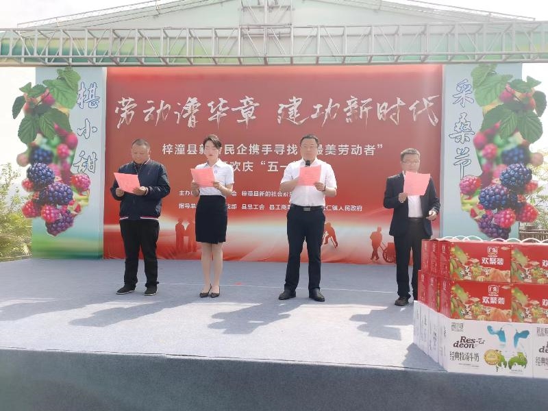 劳动谱华章,建功新时代。4月27日,新阶民企携手寻找“最美劳动者”暨欢庆“五一”活动在宏仁镇潼江印象生态园顺利召开。 县委常委、统战部部长、总工会主席何立群参加活动。