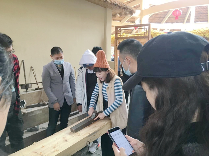 在农耕博物馆里,媒体朋友们不仅看到了许多我国旧时的农耕用具、工艺产品,还参与体验了竹编、泥瓦、刨木、缝鞋垫、古法榨油等农耕项目,乐在其中的同时更对大陆的农耕文化有了更加深刻的了解。