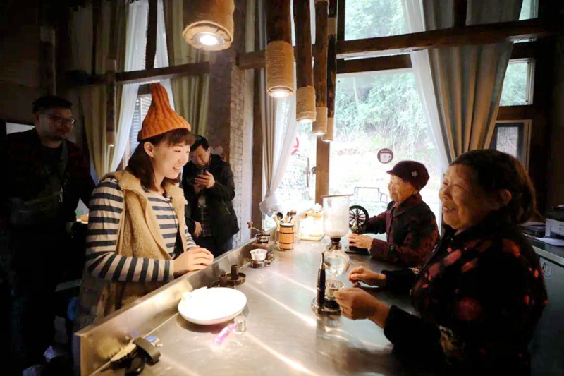 在雲桢民俗里,媒体朋友们跟素清、云珍两位婆婆进行了亲切的交谈,对他们做出的咖啡也给予了不错的评价,还跟五龙村的这两位“村红”婆婆一道调制了咖啡。
