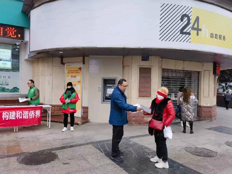 在西城街道府苑社区,侨务工作人员通过“面对面、点对点”的形式,为所在辖区侨胞、居民进行涉侨法律法规知识宣传。