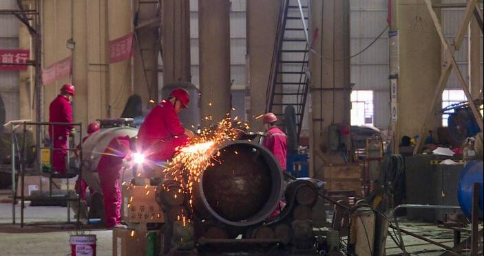 12月19日,在四川嘉科能源装备工程有限公司生产车间,机械轰鸣、焊花飞溅,工人们正在赶制最新一批订单。