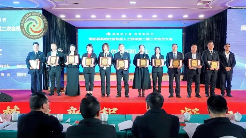 为表扬先进,激励士气,大会对在2024年度做出积极贡献的先进集体及个人进行了表扬,市、县领导分别为获奖会员颁发了优秀新阶人士、优秀爱心人士、建言资政先进个人、光彩事业先进单位、新阶工作特别贡献等奖项。会上还为第一阶段会议增补的理事、常务理事和副秘书长颁发了当选证书。同时,县委统战部对今年成功创建新的社会阶层人士统战工作实践创新基地的单位南部县东辰学校进行了授牌。