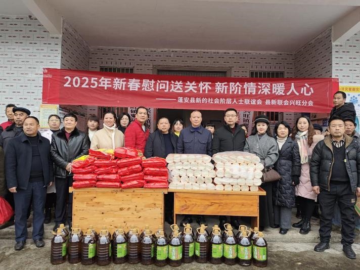 在春节到来之际,在中共蓬安县委统战部的指导下,1月14日上午,蓬安县新联会组织部分会员前往兴旺镇、银汉镇开展2025年“走基层·送温暖”新春慰问活动。