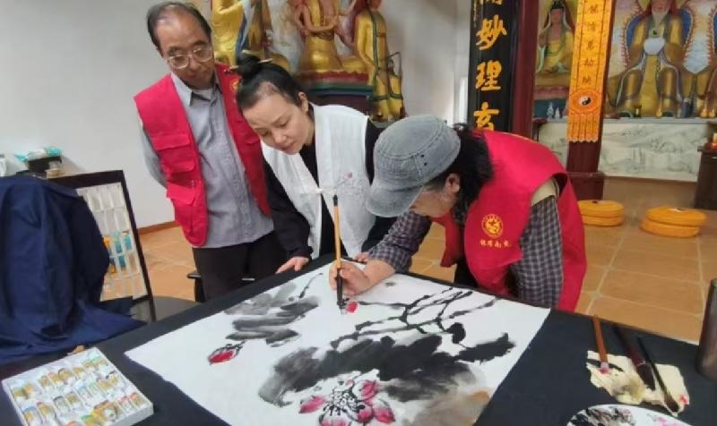 “道法自然开新境,墨韵流芳润古今”。4月12日,南充市嘉陵区道教协会与嘉陵区书画协会在高院山道观联合举办“翰墨问道•山水寄情”活动,活动以“文化润教”为主题,通过书画艺术展现“天人合一”“道法自然”经典,推动道教文化与中华优秀传统文化深度融合。本次活动吸引了书画家、文化学者、文艺爱好者、道教界人士30余人参与。