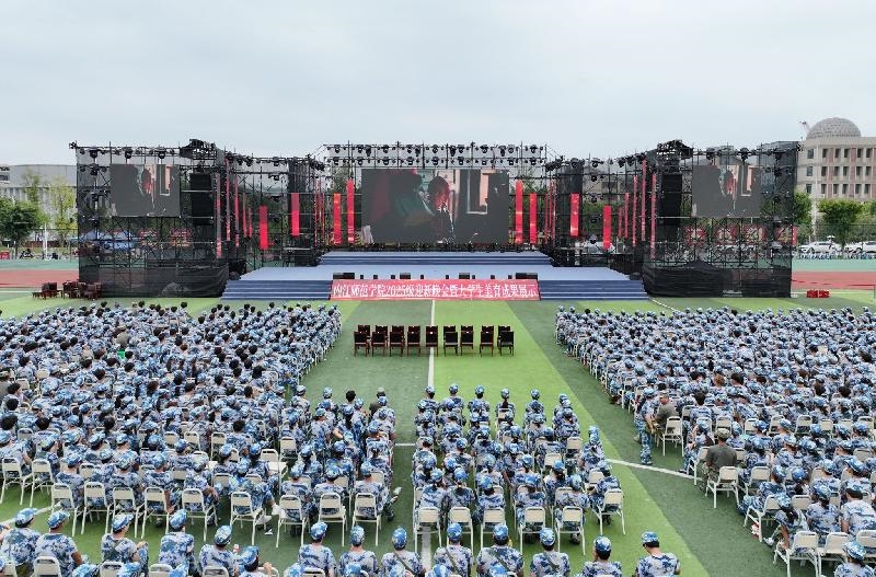 2025年9月27日,内江师范学院组织2025级新生在田径场集中观看民族团结进步主题电影《信者》。