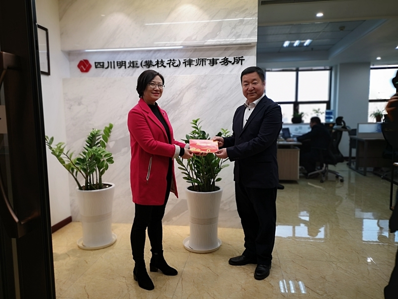 最后,张敏一行来到四川明炬(攀枝花)律师事务所,看望慰问了市新联会会长兼市新联会律师分会会长刘栓宁。张敏详细了解了该事务所所在的律师行业统战工作创新实践基地建设情况,对过去一年来市新联会积极开展各类活动,不断凝聚人心力量的做法表示赞赏,希望其继续发挥好新联会的桥梁和纽带作用,通过教育引导、联络联谊、发挥作用等方式,将广大新的社会阶层人士团结在党委政府周围。