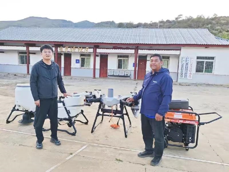 在县供销社的协调下,将无人机植保纳入基本公共服务清单,开展一年一次免费飞防服务。2025年将为全村280户农户免费作业3500亩。62岁的留守老人沙达莫拉着许涛的手说:“感谢许书记,儿子儿媳常年在外务工,我们两老口的17亩土地,全靠飞机帮忙打药施肥!”