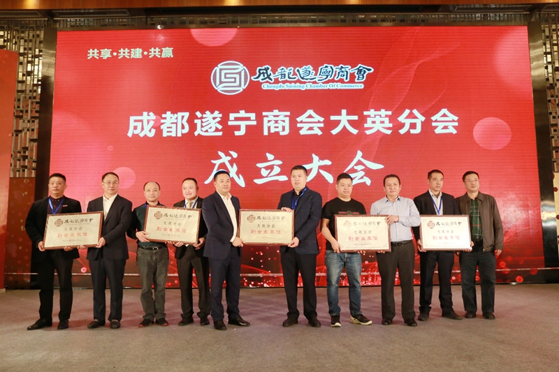 10月29日,成都遂宁商会大英分会(以下简称“大英分会”)在成都首座万丽酒店召开成立大会暨第一次会员代表大会。成都市工商联副主席温莉艳,中共大英县委书记胡道军,大英县政协主席张钰,大英县人民政府副县长文林,大英县委统战部、县工商联等相关部门负责人以及上百名成遂英商乡亲齐聚成都,共同见证成都遂宁商会大英分会的成立。