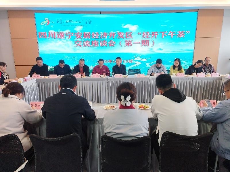 10月12日,安居区第一期“经开下午茶”活动在“琼江心语”举行,安居经开区党工委书记邹敏,安居经开区党工委副书记、管委会主任向阳出席会议。