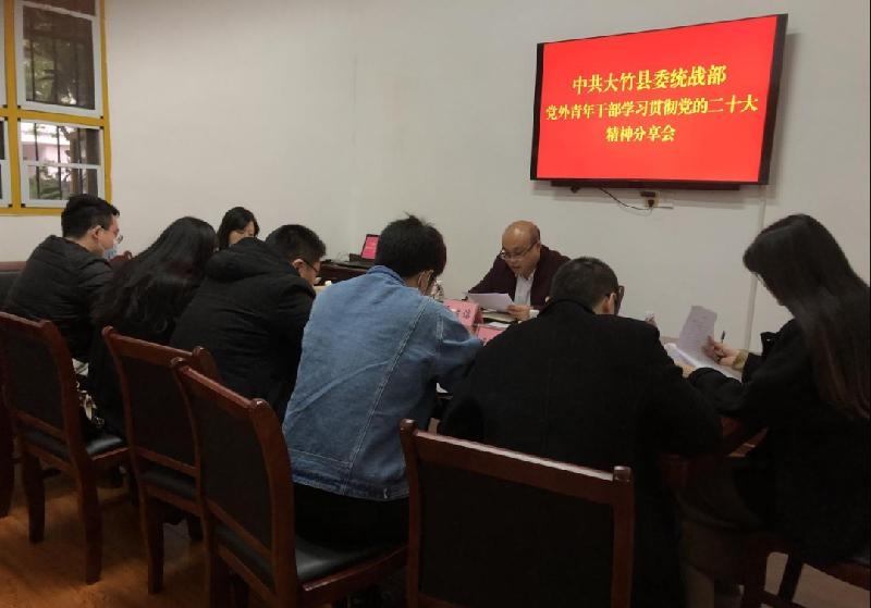 会议传达学习了党的二十大精神和党的二十届一中全会精神,专题传达了大竹县委组织部、统战部2022年第一次部际联席会议精神,听取了党外青年干部的学习心得和交流发言。