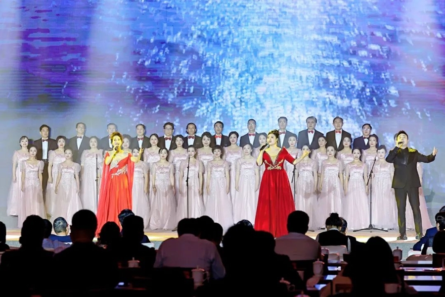 会上,老中青盟员代表进行了交流发言,民盟四川省直工委盟员演绎了表演唱节目《九寨深处甲勿海》。