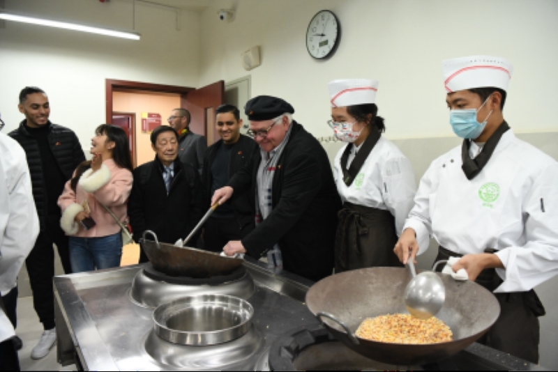 “在翻勺时要记住‘推、拉、扬、挫’四字口诀。”川菜烹饪实训室内,成都中和的学生们正在老师的指导下开展颠勺训练。德国客人走进现场,饶有兴趣地拿起勺子学起了颠勺技巧,在学生们的邀请下还品尝了“鱼香肉丝、麻婆豆腐”等川菜样品,连竖大拇指:“美味,非常美味的食物”。