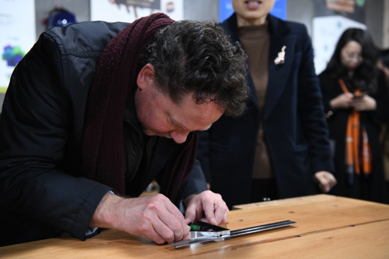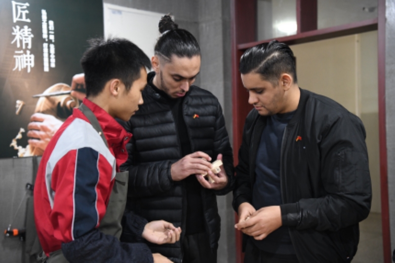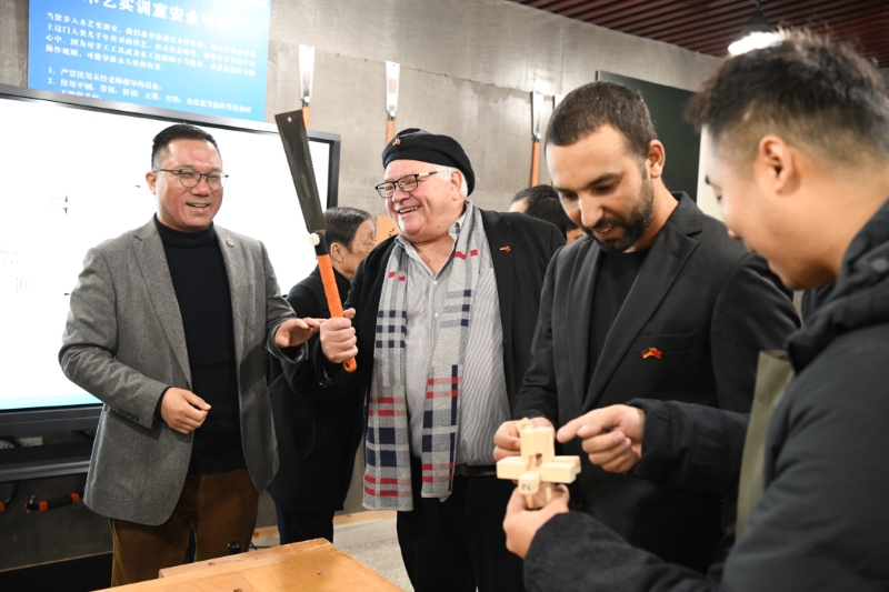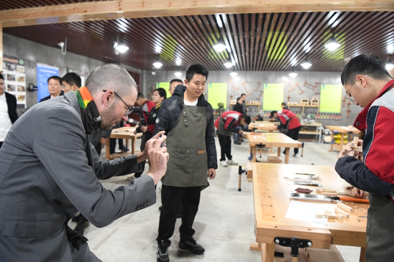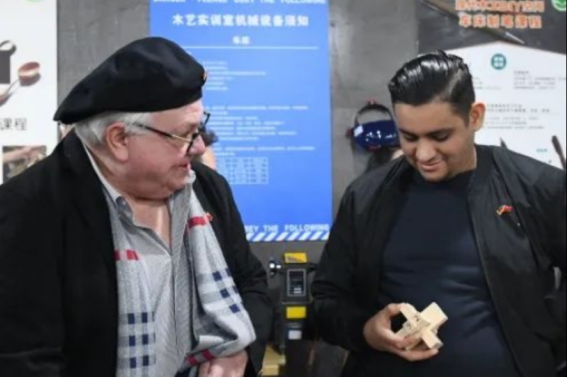 木工手工作坊内,设计精美的木制鲁班锁瞬间吸引了德国客人们的眼球,纷纷动手拼装起来。这个设计很巧妙,很有特色,能送我一个吗?”默克制药研发中心负责人一边认真拼装,一边询问身边的木工学员。离开前,学员们把自己精心制作的木制鲁班锁赠送给了德国朋友,客人们非常高兴并表示了感谢。