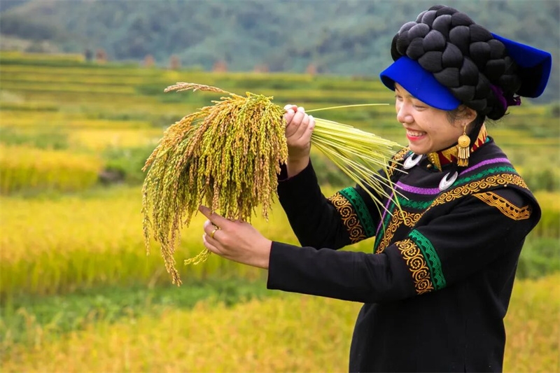 春种一粒粟,秋收万颗子。甘孜州甘孜县,金穗压弯青稞秆,风吹麦浪谷满仓,一台台收割机发出幸福的轰鸣;凉山州盐源县,彝族阿妈把收割的苦荞捆成一堆堆荞垛,喜笑颜开;宜宾市兴文县,苗族小哥望着金黄的稻田,动情唱响《美丽的石海》……不同地域,各族群众共享同一份丰收的喜悦。