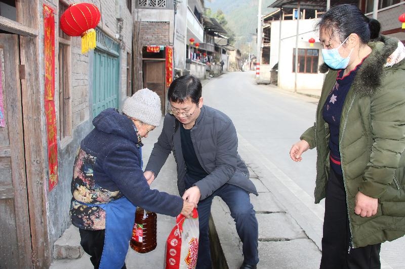 1月6日,在春节来临之际,芦山县委统战部常务副部长文光金率队走访慰问我部结对帮扶脱贫户,为每一户脱贫户群众送去春节的慰问,为他们送去党和政府的关怀和温暖。