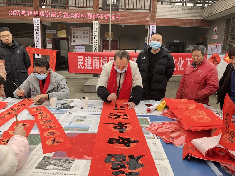 福赠春联祈平安,奋笔挥毫迎新春。在中华民族传统佳节---春节即将到来之际,1月11日,民建雨城区委驻会副主委魏平率队来到雨城区草坝镇林口村,开展“写春联·送祝福”活动,向广大群众送上新春的问候和美好的祝福。