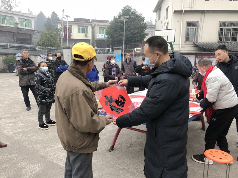 活动共送出春联近200副、“福”字100余张,受到村民的热烈欢迎,为即将到来的兔年新春佳节营造出欢乐祥和的氛围。