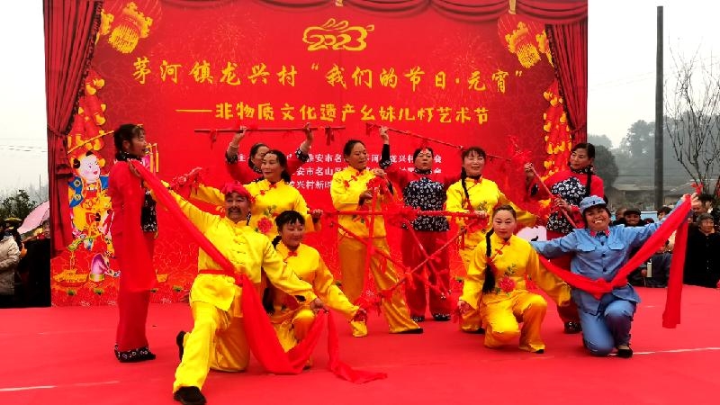 茅河镇龙兴村,开展了“我们的节日•元宵——非物质文化遗产幺妹儿灯艺术节”主题活动。活动涵盖了幺妹儿灯为主的文艺汇演、自助汤圆、猜灯谜等丰富内容,现场欢声笑语,热闹非凡。