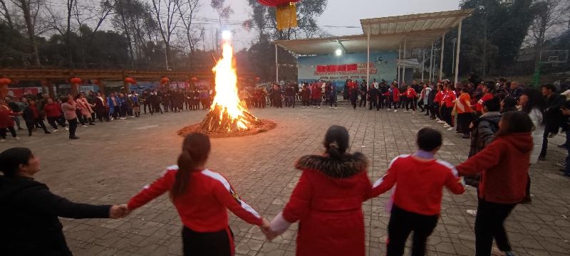 红星镇双河村、中峰镇秦场村等村举办了以“手牵手,心连心,民族团结一家亲”为主题的篝火晚会,少数民族同胞们带头跳起锅庄,现场观众大家手拉手,围着篝火载歌载舞,整个活动现场呈现出一片欢乐喜庆的景象。