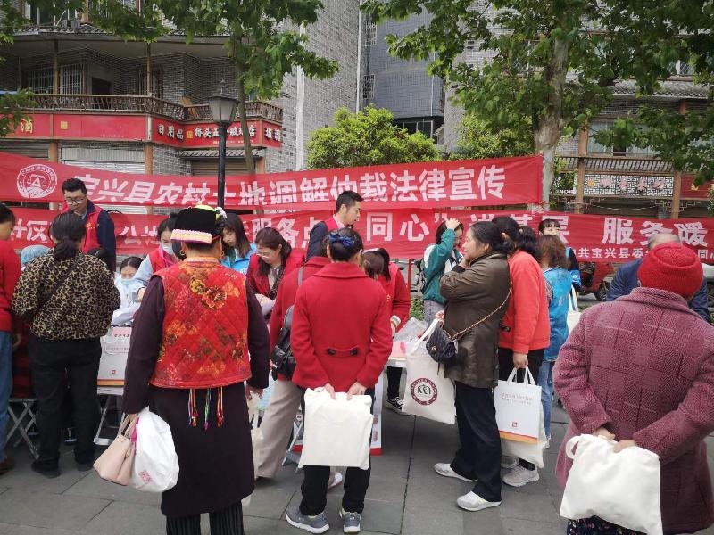 为推动我县创建全国民族团结进步示范县工作深入开展,铸牢中华民族共同体意识,弘扬民族团结精神,助力乡村振兴。4月26日,宝兴县委统战部发挥统一战线资源优势,联合县委政法委、县农业农村局、县乡村振兴局、县教育局、县司法局、县卫生健康局,穆坪镇人民政府等多家单位走进穆坪社区开展“中华民族一家亲 共建共促共发展”同心服务团下基层活动,为社区群众讲政策、办实事。
