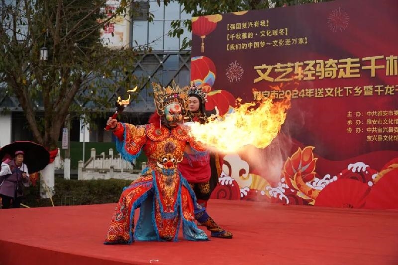 为进一步丰富各族群众的精神文化生活,全面推进各族群众交往交流交融。在临近春节之际,近日,雅安市2024年送文化下乡暨四川省千龙千狮闹新春活动在宝兴县灵关镇新时代广场火热开展。