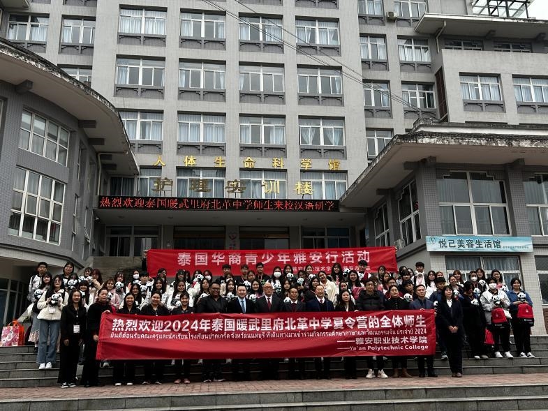 3月13日,由雅安职业技术学院、雅安市侨联共同筹办的泰国华裔青少年雅安行活动开营仪式在雅举行,来自泰国暖武里府北革中学的70名华裔师生相聚雅安,开启为期1个月的研学活动。雅安职业技术学院党委常委、副校长樊正康,市委统战部副部长、市侨联党组书记高崇军,市侨联专职副主席蔡鹏,泰国兰帕潘尼皇家大学国际交流处中方主任张德俊等参加开营仪式。