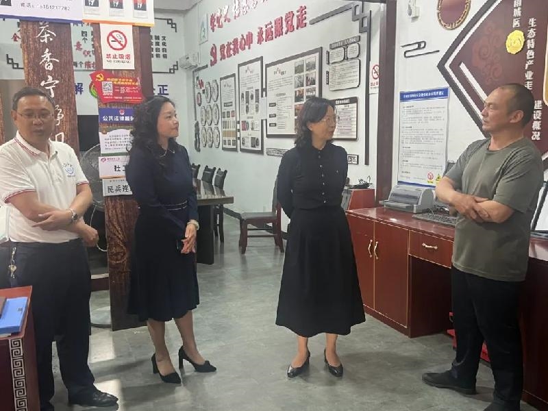 李蓉一行先后来到草坝镇合江村云台山茶文化学院、塘坝村茶叶交易市场、茶山艺林艺术民宿集群等地,详细了解了基层统战工作实践创新点位建设和新阶人士助力乡村振兴等工作情况。