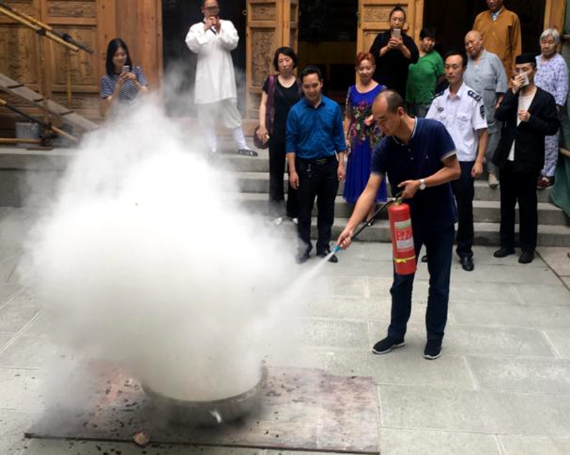 消防教官的讲解深入浅出,内容涉及如何防范火灾,以及发生火灾情况时如何正确快速地报警、针对各种性质的火灾如何灭火和逃生、灭火器具的介绍和用途等方面。不仅从理论上向大家传授关于消防的各种安全防范知识,而且利用多媒体的形式例举了大量实际生活中的真实案例,教训深刻,发人深省。理论培训结束后,消防教官在宗教场所实地向大家演示了灭火器具的使用方法,并组织参训人员实际操作灭火器的使用,进一步强化了所学消防知识。
