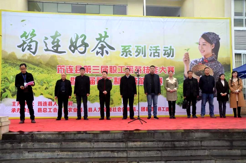2019年3月13日,筠连县第三届职工采茶技能大赛暨首届制茶技能大赛分别在非公茶企筠连玉壶茶业公司基地玉壶茶山和筠连县瑞鑫茶业有限公司举行。宜宾市总工会党组成员、经审会主任曾勇,筠连县委常委、县统战部部长、县总工会主席贾圣君,县政府副县长钟声远,县政协副主席陈薇出席开幕式。