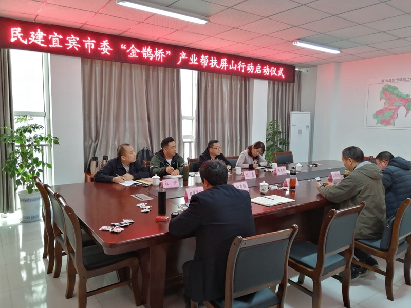 近日,民建宜宾市委“金鹊桥”产业帮扶屏山行动启动仪式在屏山县新市镇举行。县委常委、统战部部长何才华,民建宜宾市委秘书长刘勇,民建宜宾市委、县委统战部、县农业农村局、相关乡镇领导以及部分企业家代表参加活动。