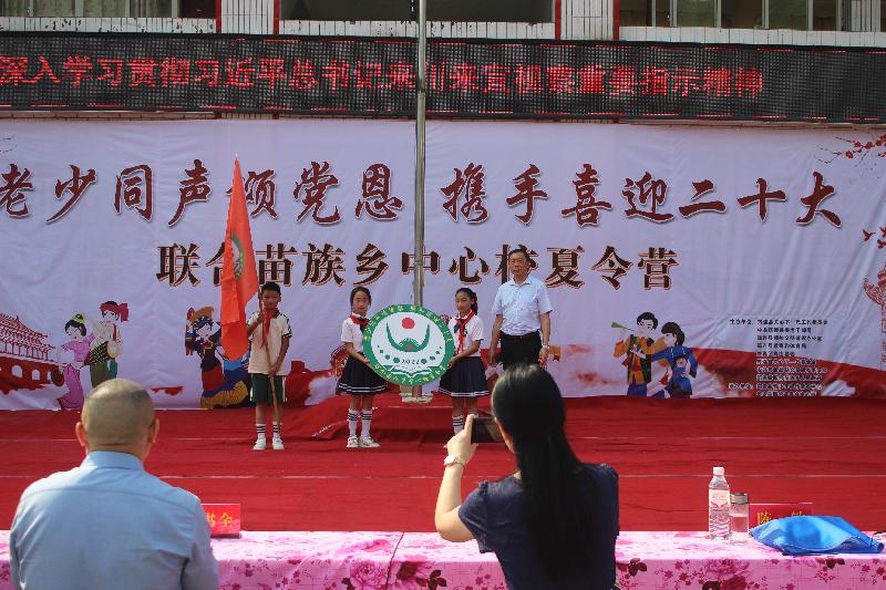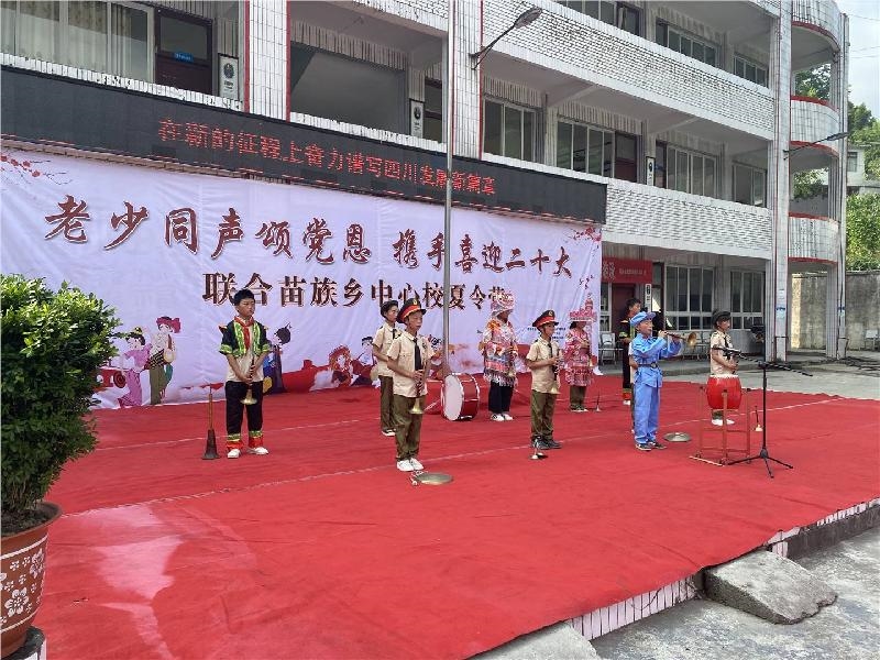 7月5日,由筠连县关工委主办,县文明办、县教育和体育局、团县委、联合苗族乡协办,联合苗族乡中心校、县青少年活动中心承办的“老少同声颂党恩,携手喜迎二十大”四川省万名青少年夏令营筠连分营在联合苗族乡民族小学举行开营仪式。参加这次夏令营活动的苗汉学生82人。