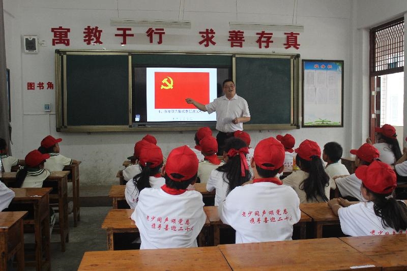 该乡中心校苗族教师熊宗才为孩子们讲述了红色故事,勉励孩子们铭记今天的幸福安宁生活来之不易,要珍惜时代,好好学习,努力做一个对国家社会有用的人。