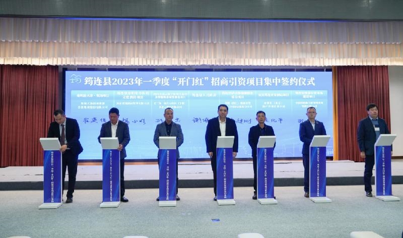 3月23日,筠连县举行2023年一季度“开门红”招商引资项目集中签约仪式,县委书记石进出席签约仪式并讲话,县委副书记、县长谢晓丹,县人大常委会主任雷敏,县政协主席周勇出席签约仪式,县委常委、统战部部长聂莉主持签约仪式。