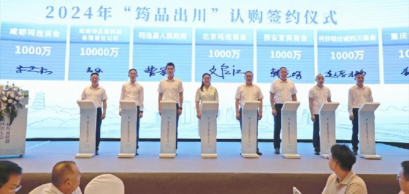 在筠连文旅推介进北京暨2024年“筠品出川”发布仪式环节,副县长曹莉作了品味宜宾—长江首城通航城市之旅宜宾(北京)城市购物节暨筠品出川推介,重点推介了筠连红茶、筠连水粉、筠连黄牛肉、筠连黄精、筠连椒麻鸡、筠连月饼等特色产品并进行了筠品认购签约。