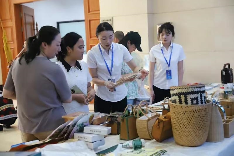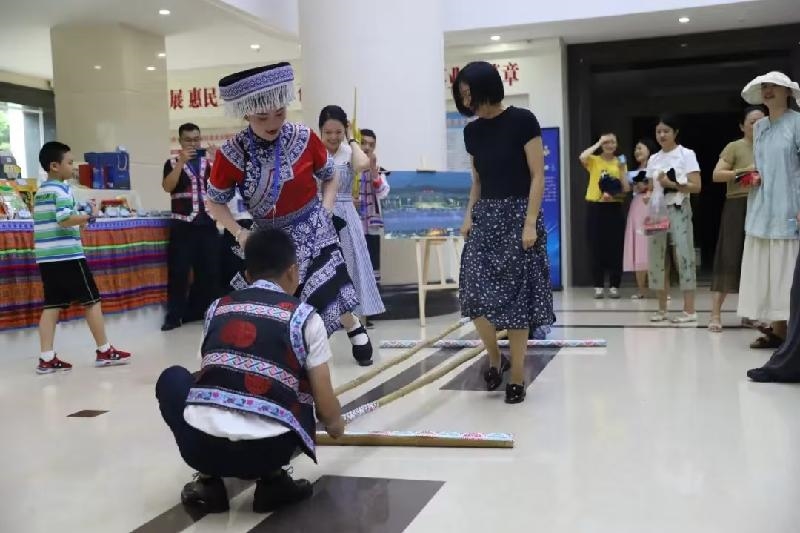 在特色产品展销中,兴文各类特色产品齐聚,从竹产品、苗药产品到“以竹代塑”场景应用和文创商品,112 个品类琳琅满目,尽显兴文苗乡人民的勤劳智慧。其中,竹梳、竹包等竹制品设计精巧且绿色低碳、实用,深受现场嘉宾喜爱,供不应求。在美食品鉴区,美食狂欢令人陶醉。试吃环节中,腊肉、月饼等美食令人赞不绝口;苗乡名厨烹饪的兴文稻虾、苗乡醉鹅等色香味俱全,兴文稻虾尤其受欢迎。同时,苗族竹竿舞、芦笙曲等非遗文化元素的融入,让嘉宾沉浸在独特的苗乡风情之中。