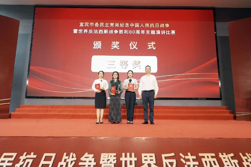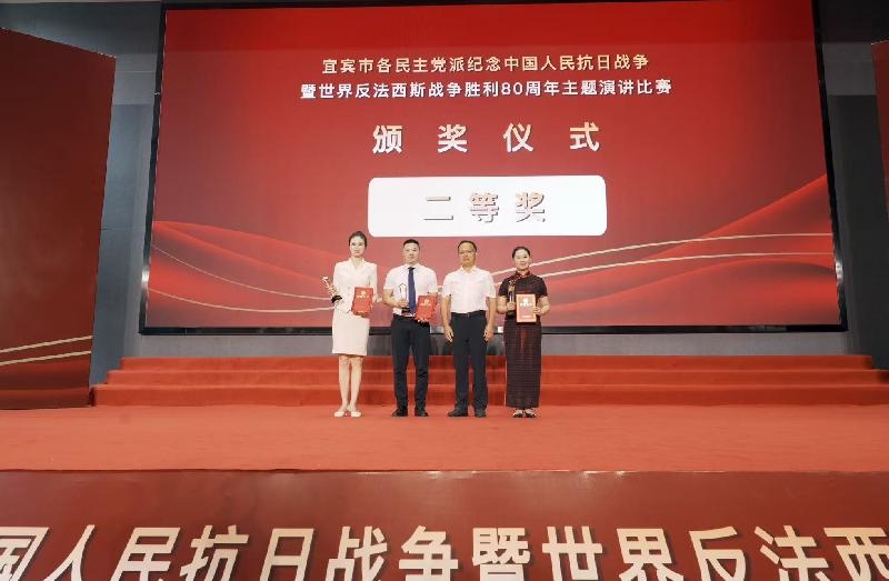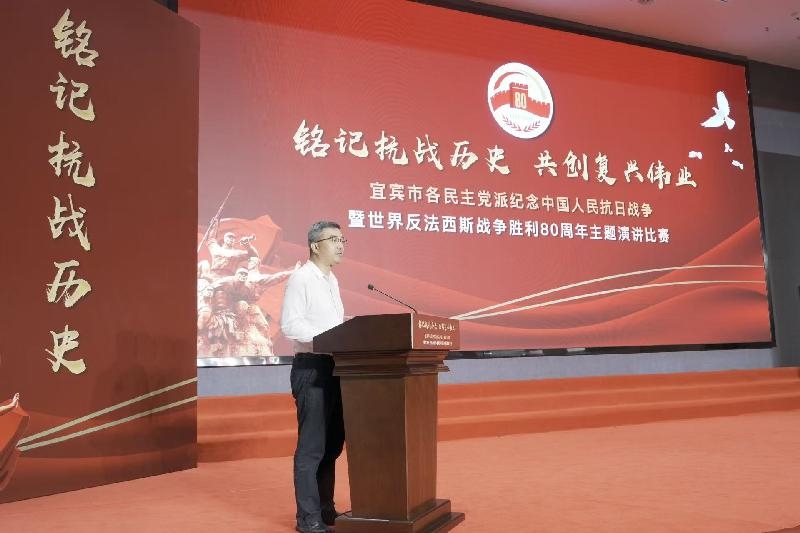 8月22日,宜宾市委统战部举办宜宾市各民主党派纪念中国人民抗日战争暨世界反法西斯战争胜利80周年主题演讲比赛决赛,以“铭记抗战历史·共创复兴伟业”为主题,透过英雄故事和统战视角,继承和发扬爱国主义光荣传统,弘扬抗战精神,铭记合作初心,激发奋进力量。