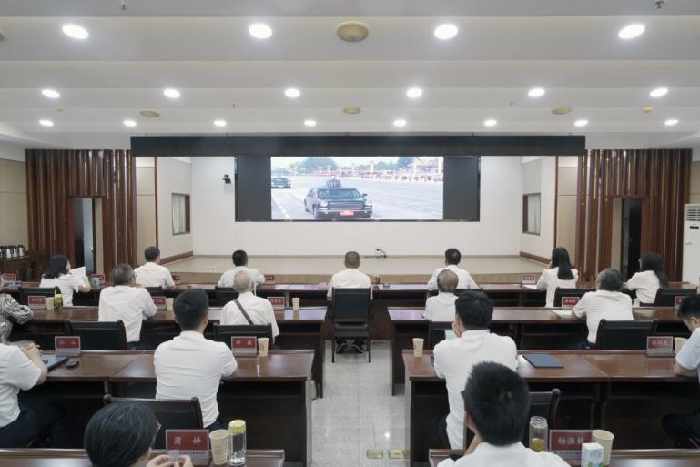 上午,全体党员集中观看了纪念中国人民抗日战争暨世界反法西斯战争胜利80周年大会及阅兵式。习近平总书记的重要讲话和庄严的阅兵式,不仅让党员重温了中国人民抗日战争的壮阔历程和伟大胜利,感受了祖国现在的强大,更进一步坚定了“勿忘国耻、振兴中华”的理想信念和立足统战岗位、服务国家发展的政治责任感。大家纷纷表示,这场直播不仅是一次深刻的历史教育,更是一次强烈的精神洗礼。