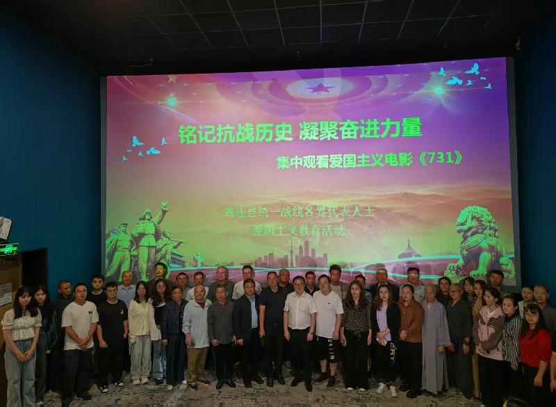 为纪念中国人民抗日战争暨世界反法西斯战争胜利80周年,进一步深化爱国主义教育,广泛凝聚团结奋进力量,铸牢中华民族共同体意识,9月23日,筠连县统一战线开展“铭记抗战历史 凝聚奋进力量”爱国主义主题教育活动,集中观看重大历史题材影片《731》。