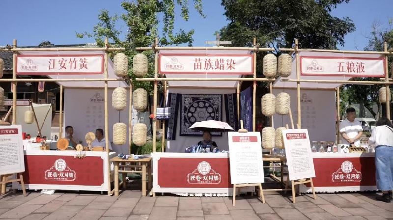 冰甜的双河凉糕、精致的宜宾苗族蜡染、美味的台湾凤梨酥……9月24日,两岸非遗文化集市在宜宾李庄银杏广场热闹开市。活动以“匠巷·双月集”为主题,巧妙融合中秋佳节团圆意象与两岸非遗文化精髓,为市民和游客打造了一个集“展、演、购、食、玩”于一体的沉浸式两岸非遗文化主题集市,让古老的非遗技艺在千年古镇焕发全新活力。