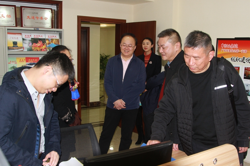 调研首日,王元勇一行来到民建广安市委第一支部、第二支部活动阵地,一边听取现场负责人介绍一边实地察看并翻阅相关资料。王元勇对支部活动有阵地、支部制度上墙和编印学习资料的做法给予了充分肯定。随后,王元勇一行来到了民建广安市委第三支部学习实践活动基地——广安市广安区中桥街道社区和民建广安市委第一支部学习实践活动基地——广安市保城特种设备检验有限公司,实地察看了活动基地相关情况,并认真听取了基地负责人相关介绍,一致对支部确定学习实践活动基地的做法给予了高度评价,认为支部阵地与基地建设从硬件设施到活动、台账等,均有很高的标准。