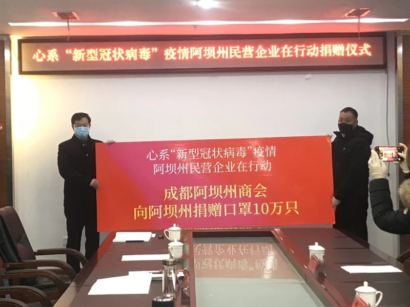 小小口罩寄深情。随着疫情加剧,一方小小的口罩竟成了紧缺物资。阿坝州知新会成员心系群众、心牵疫情,急难而出、以解倒悬。四川唐古拉风艺术团党支部书记、成都阿坝州商会会长李进带领成都阿坝州商会为阿坝州、甘孜州捐赠口罩20万只,他说,“在这场战疫中,民营企业有责任有义务为社会献一份微薄之力!万众一心,人定胜天。”成都理县商会为理县捐赠医用外科口罩5000只,云丹桑吧壳凯珠为九寨沟县捐赠一次性医用口罩950个,茂县电子商务公共服务中心捐赠医用防护口罩3800只,茂县回归饭店刘陈军捐赠防护口罩3400只、护目镜120只,四川中荣盛建设工程有限公司安辉为小金县捐赠N95口罩300只,理县桃坪镇东山村主任刘跃强为执勤民警捐赠N95民用口罩100只。此时的口罩已不仅是口罩,它是无数新的社会阶层人士拳拳爱心筑成的安全防护罩。