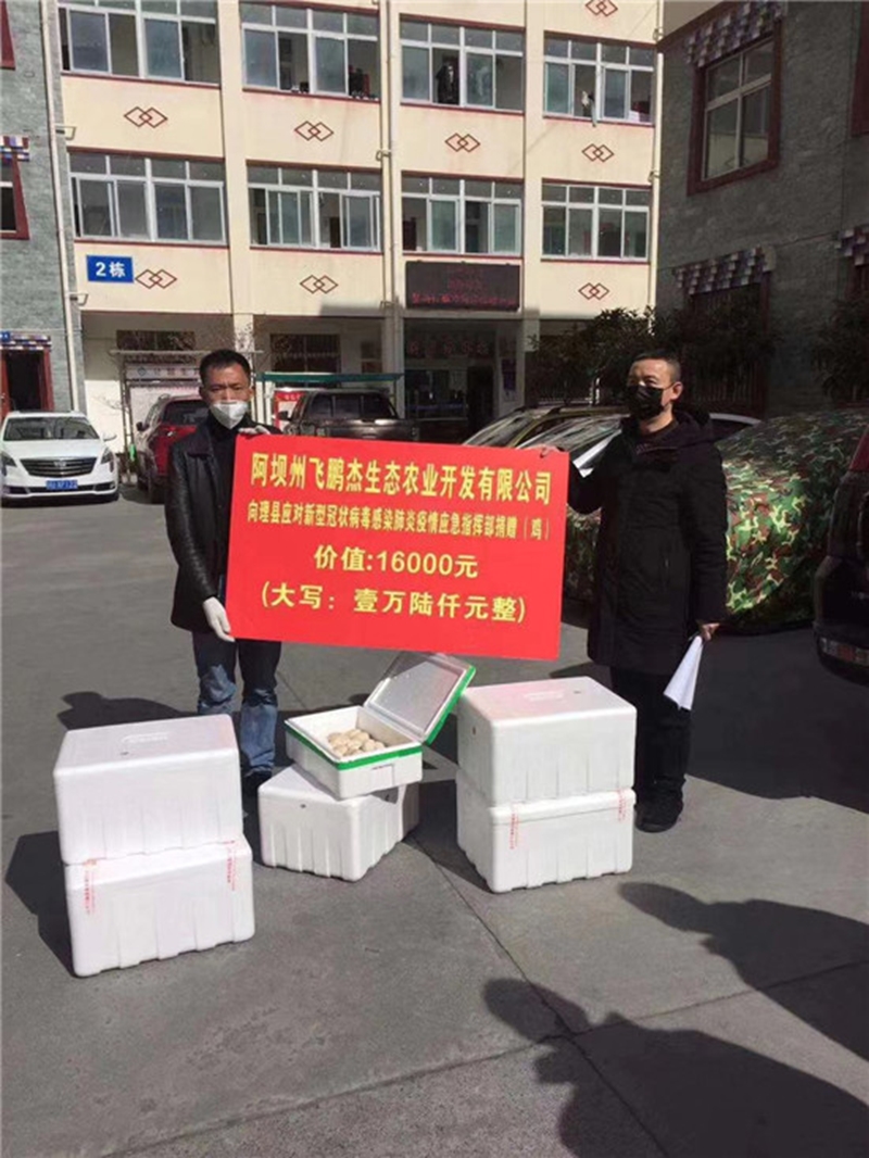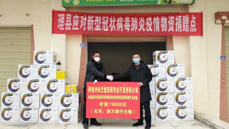 慷慨解囊雪中情。驰援抗疫战线、缓急防疫物资短缺,这是新的社会阶层阶人士的疫战阵地。阿坝州向巴堂高原农业开有限公司总经理何尔乓向理县应急指挥部捐赠价值18000元物资;理县晨兴加油站有限责任公司陈雪峰向红十字会捐款20000元;汶川县知新会副会长李洪向武汉慈善总会个人捐款2000元;阿坝州藏地传奇高原农业开发有限公司、小金县鑫宇农牧业发展有限公司、新桥农牧业发展有限责任公司、小金县千山原农业产品有限公司为小金县应急指挥部捐赠21000元现金;新纪元电冶有限公司向茂县政府捐赠了5吨次氯酸钠消毒药品,同时承担了包装和运输任务;四川岷江电化有限公司为茂县土门镇团结村、永城村送去1100kg消毒液。据不完全统计,阿坝州州、县知新会会员为抗击疫情捐赠口罩N95口罩400只,医用口罩32万只,消毒液7吨,生活物资及现金46多万元。