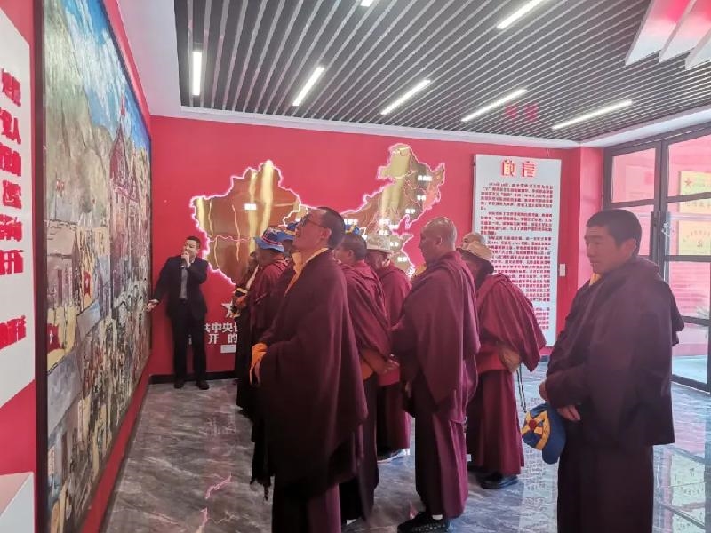 在芦花会议遗址、红色昌德教育基地,旦巴等僧众一行通过认真聆听讲解员的讲解,现场查看图文资料等方式,进一步了解了当年红军在黑水的长征史诗,重温红色记忆,汲取红色精神力量。一幅幅资料图片、一件件珍贵实物,一段段文字介绍,将僧人们再次带回了那段战火纷飞、可歌可泣的峥嵘岁月。寺庙僧众们边走边听,不时驻足观看,交流感悟,再次感受革命先烈为了信仰、不畏艰苦、不怕牺牲、敢于奋斗的豪迈气概和革命精神。
