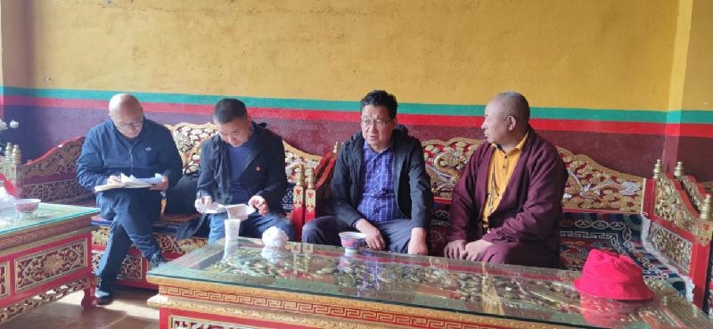 在德青郎寺调研指出,各乡镇党委、政府、寺管所、民管会要形成合力,严格按照属寺属地管理原则,加强对宗教场所、宗教事务和宗教活动的依法规范管理,要加强《宗教事务条例》等政策法规宣讲力度,引导广大僧人爱国爱教、遵规守法,不断铸牢中华民族共同体意识。