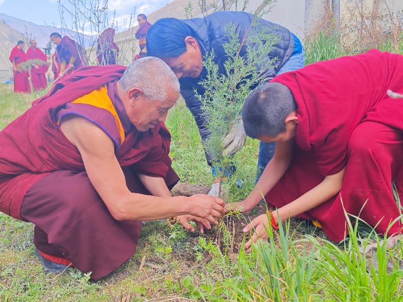 值此青绿,不负佳期,又是一年植树时。为深入贯彻习近平总书记4月3日参加首都义务植树期间系列指示精神。4月11日,四川藏语佛学院阿坝分院开展以“美化校园、绿化祖国”为主题的义务植树活动。全体师生及干部职工用实际行动践行“植树护绿,人人有责”的绿色理念。