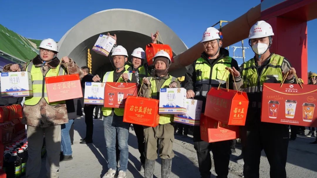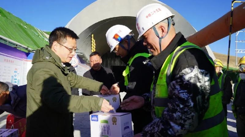 宋勇一行慰问团首先来到中铁二十五局集团西成铁路四川段 3 标工程指挥部,实地了解项目施工建设的进展情况,并为一线企业职工送去牛奶、清油以及地方土特产等慰问物资。宋勇向坚守岗位、默默为若尔盖高质量发展奉献力量的项目部全体人员表达了诚挚感谢。他指出,希望大家继续发扬不怕苦、不怕累的精神,遵循科学理念,严守安全底线,在确保工程质量与进度的同时,为若尔盖县的民生改善持续贡献力量,推动当地经济快速发展,使西成铁路建设成为引领若尔盖发展的新动力。