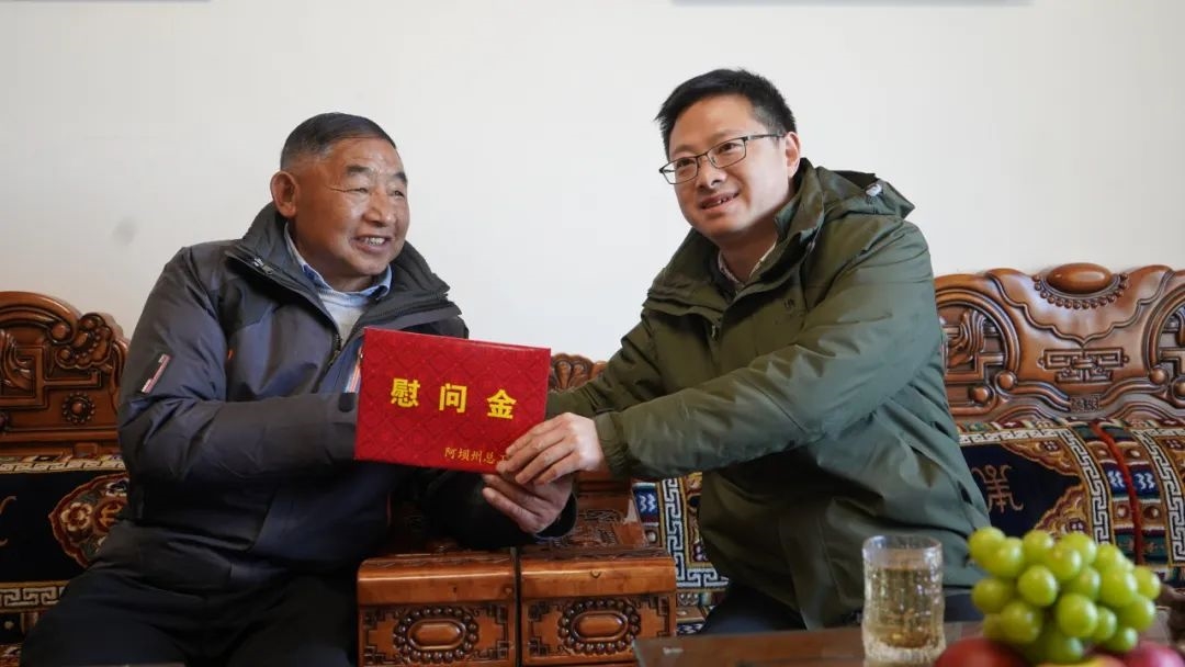 宋勇一行慰问团随后来到离退休劳模建国家中,关切询问其子女就业与身体状况,对其在职期间为森林生态环境和可持续发展所做贡献,以及退休后投身社会服务与宣传工作给予高度肯定和诚挚感谢,并送上慰问品与慰问金,祝愿他退休生活幸福美满,鼓励他持续传承劳模精神,带动更多人参与到若尔盖的建设中来。