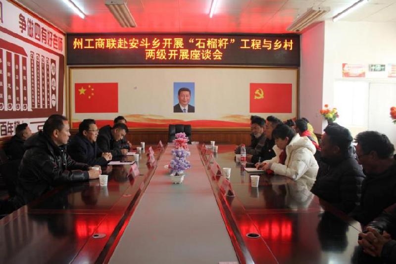 活动结束后,州工商联组织成都吉祥天嗣藏文化传播有限公司、安斗乡党委政府及村“两委”班子成员召开全国两会和州委十二届五次、六次全会精神宣讲会,并就困难乡镇托底性帮扶工作展开座谈,共同商议乡村发展规划、产业发展布局、集体经济发展壮大、基础设施建设、民生工程实施等工作。
